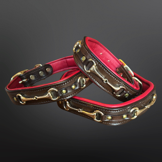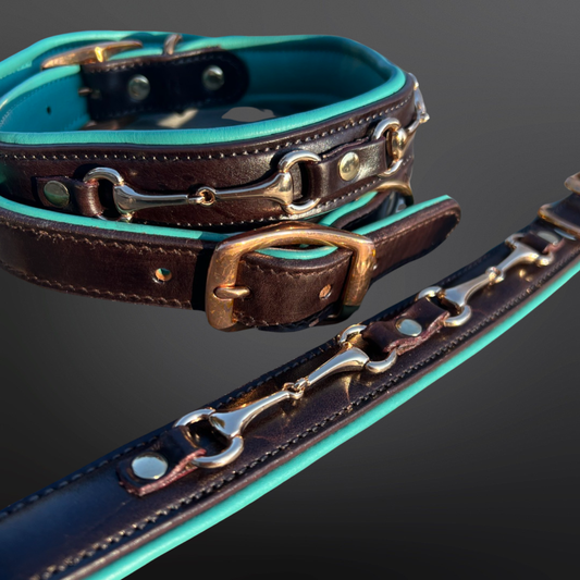 Snaffle Bit Padded Leather Dog Collar - Turquoise